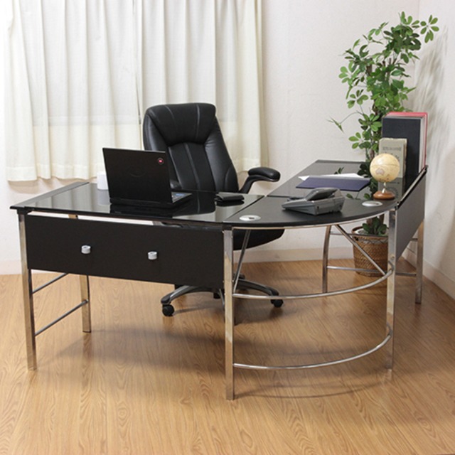 ガラスPCデスク L型 CT-1040BK ※北海道、沖縄、及び離島に関しましては、別途条件ありです。