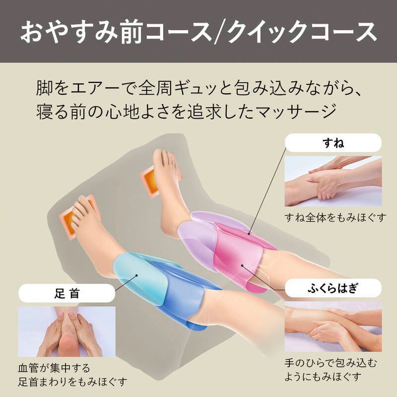 脚をエアーで全周ギュッと包み込みながら、寝る前の心地よさを追求したマッサージ・プロに学んだ3つのコース・インナーカバーは取り外し洗濯可能