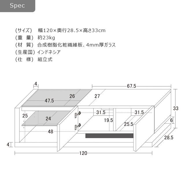 【商品サイズ】約 幅120×奥行28.5×高さ33cm