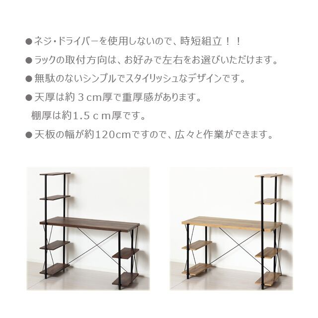 ドライバー不要でらくらく組立!ラック付きデスクです!