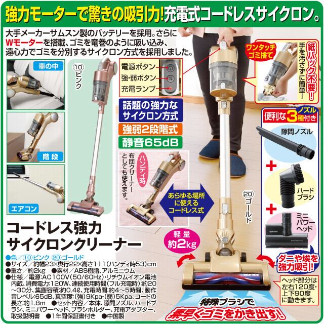 コードレスクリーナー サイクロンクリーナー ※沖縄、及び離島、配送不可です。