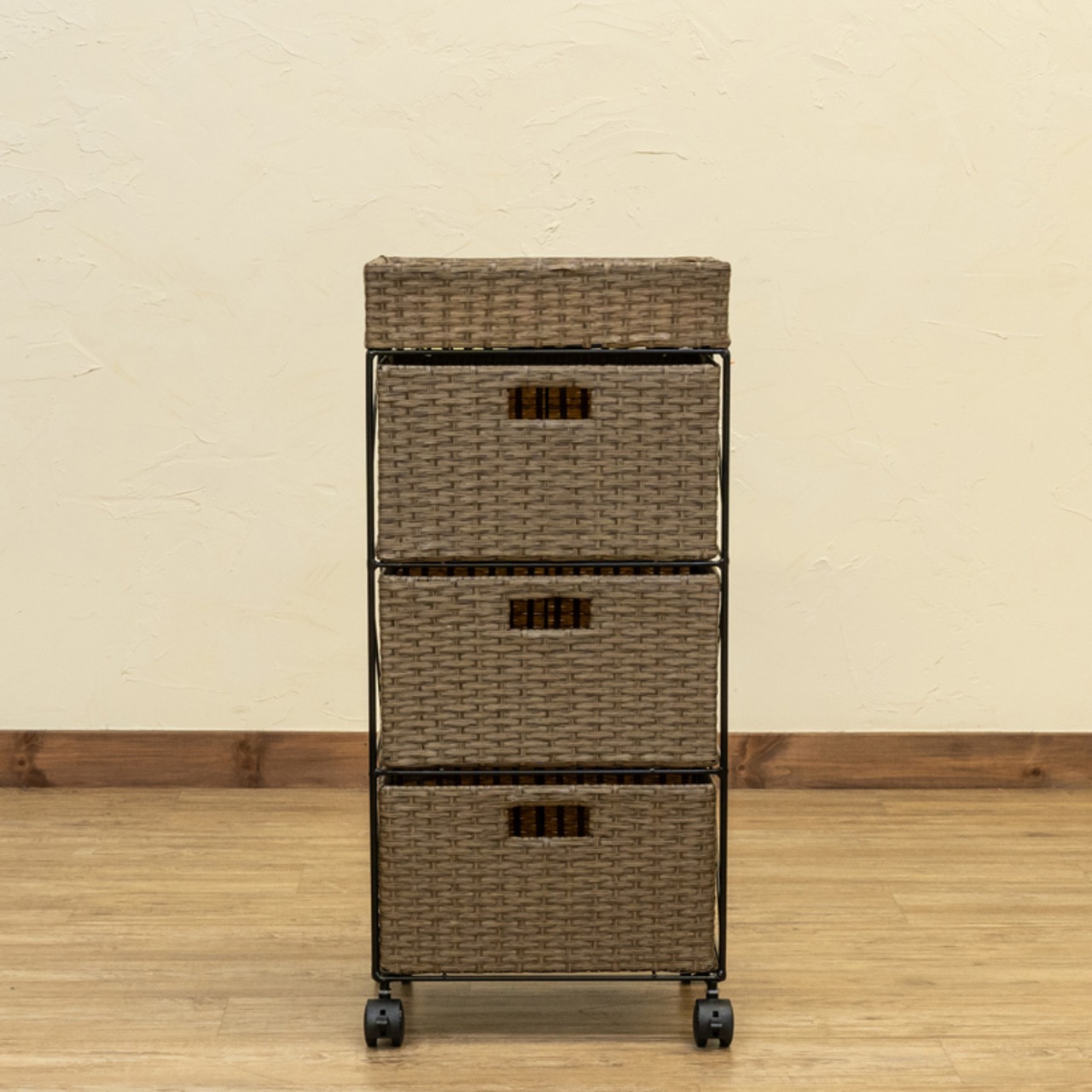 ラタン調 チェスト 3段 BR/IV/CM/GY ※沖縄、及び離島、配送不可です。