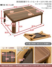 家具調折脚フラットヒーターこたつ 90×60 長方形です!