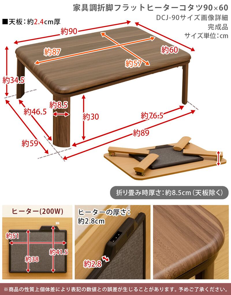 家具調折脚フラットヒーターコタツ 90×60 WAL/WH 【佐川・離島発送不可】