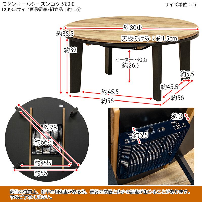 モダンオールシーズンコタツ 80Φ MWH/OAK/VBR 【佐川・離島発送不可】
