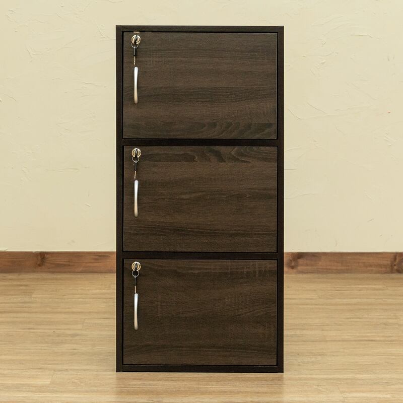 鍵付きラック 3段 WAL/WH ※沖縄、及び離島、配送不可です。