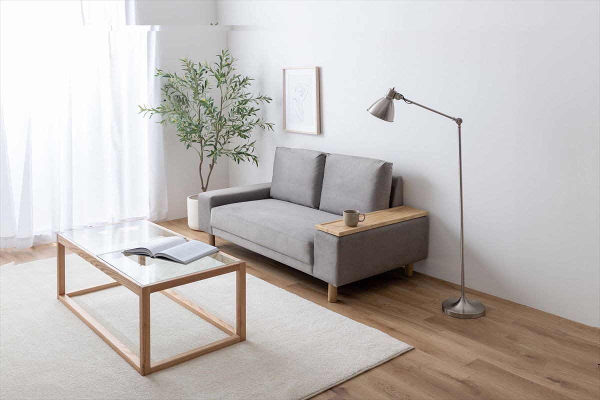 くつろぐ・飲食・寝転ぶの全てがソファ上で完結する『Lilou(リル)』サイドテーブル付き2人掛けソファ