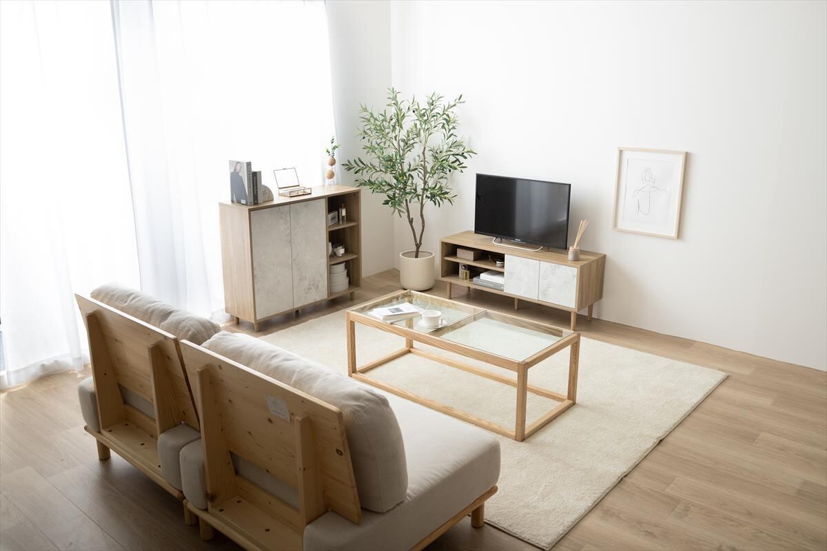 美しい木目×ストーン柄のバイカラーデザインがおしゃれな『Tas(タシュ)』シリーズのキャビネット♪