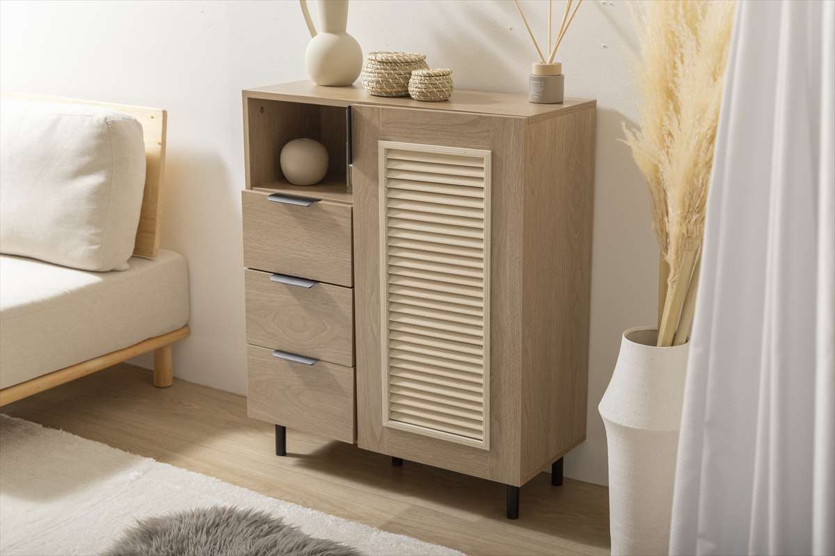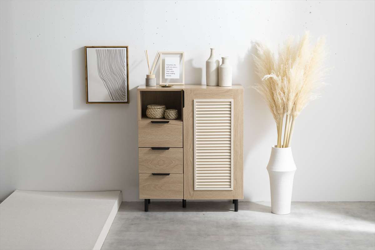 ナチュラルな木目にルーバーデザインをさりげなくあしらった『Coffea(コフェア)』シリーズのキャビネット!