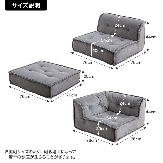 【コーナーソファ】幅76cm×奥行76cm×高さ44cm(座面高:20cm)